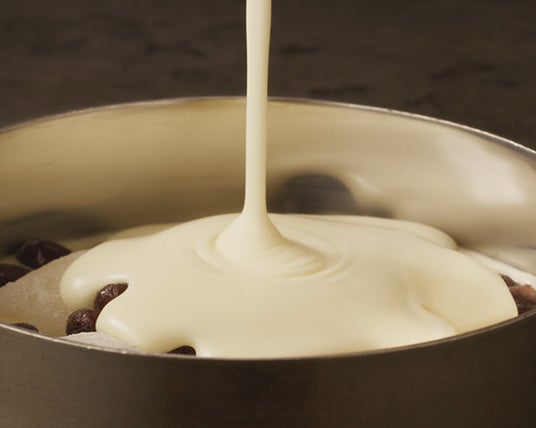 味わいの最大のポイントとなっているのは、蜜煮でふっくらと粒感を残した上品な甘さの北海道産小豆。もっちりと弾力のあるダイス状の求肥と相まって、和の趣きを表現しています。
