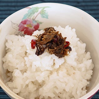 東北地方の原野で採集されたふきのとうを白醤油で炊き上げました。ちょっぴりほろ苦い味がご飯にマッチします。