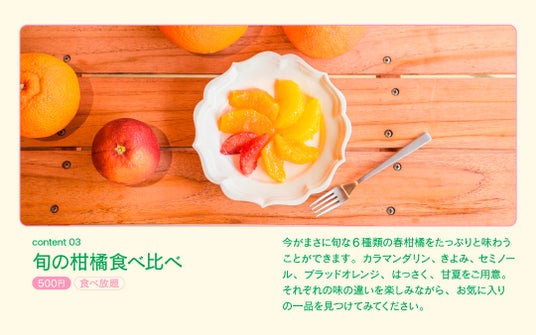 4.6種類の柑橘食べ比べカラマンダリンをはじめ、春の旬の柑橘6種を食べ比べできます。