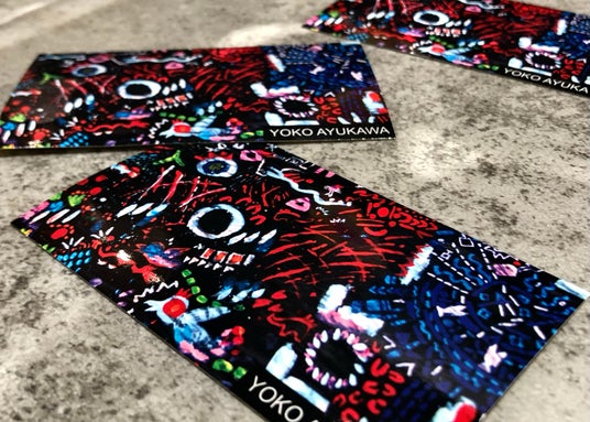展示会場では、鮎川陽子の世界観をより身近に感じられる特別なステッカーをご用意しました。