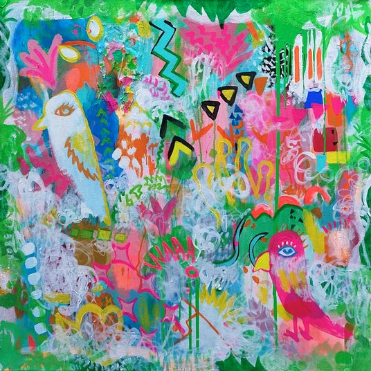 色彩豊かに展開される抽象表現、ポップなモチーフの具象作品。自由闊達な作風で、エネルギーに満ちた画面が観る者に強い印象を残すアーティスト、鮎川陽子。