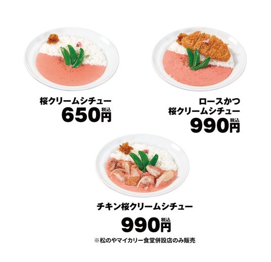 ※「チキン桜クリームシチュー」は松のやマイカリー食堂併設店のみの販売です。