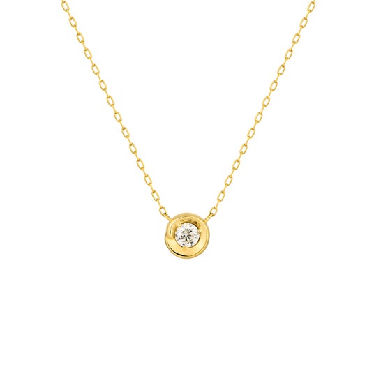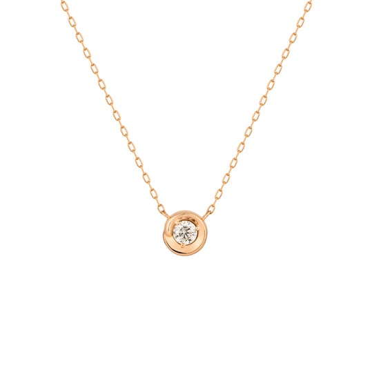 立体感のあるモチーフの地金のラインに大粒のダイヤモンドを埋め込んだ、ミニマムかつリュクスなデザインのシリーズも。胸元に永久の輝きを宿すダイヤモンドが、渦の奥で輝く水の力強さを感じさせます。プラチナやK18のピンクゴールド、イエローゴールドの全3種類のご用意で、ご自身の肌や好みに合わせてお選びいただけます。