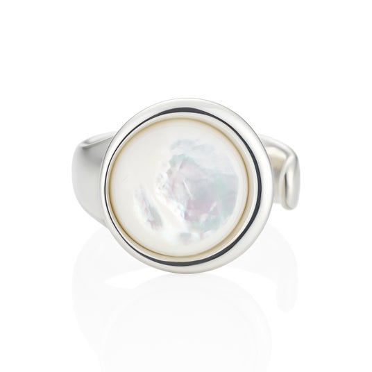 水の波紋を白蝶貝で表現したシルバージュエリー。1997年代のアーカイブジュエリーに現代のエッセンスを加えたモチーフは、4℃の原点でもある水の波紋を繊細かつ上品に再解釈したデザインに。リングは、手元を華奢に美しく彩るミニマムなデザインで、身に着ける人のうちに秘めた魅力を映す鏡のように輝きます。