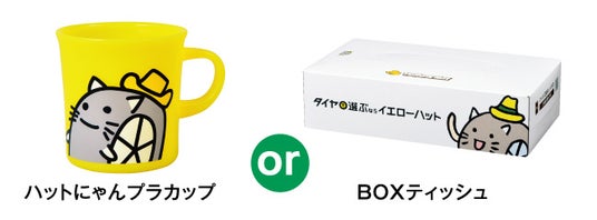 さらに、キャンペーン期間中、店頭で税込2,000円以上のお買物時に「SDカード((Safe Driver カード)」をご提示いただいた方には「ハットにゃんプラカップ」または「BOXティッシュ」をプレゼントいたします。