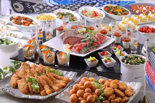 ゴールデンウィークはホテル最上階「ラ・メール」で乾杯!アサヒ生ビールやハイボール、ワインなど各種ドリンクをフリーフローでお楽しみいただけます。お料理はポークスペアリブ、ミートラザニア、枝豆、カプレーゼなど生ビールの進むメニューを揃えました。またタコさんウィンナーやお子様カレーなどキッズコーナーのお料理も充実させました。お子様に楽しんでいただけるよう射的などのイベントコーナーもご用意します。夜景を楽しみながら、ご家族や気のおけない仲間と特別な時間をお過ごしください。