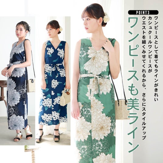 新しく誕生した新商品「カシュクールワンピース浴衣」は、ワンピースとしても浴衣としても美しく着られるよう設計されています。