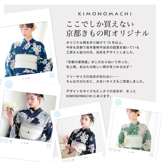 着方は簡単、ワンピース1枚でおしゃれなデザイン、夏も快適な素材感の浴衣が欲しいというお客様のニーズ。従来の浴衣の良さを損なわず、夏の浴衣に新たな選択肢を提供したいという京都きもの町の思い。その両方が掛け合わさって誕生しました。