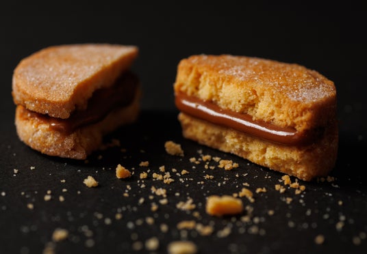 無脂肪乳から作ったミルク感たっぷりのジャムを、バターが香り立つゴーフレット(ワッフル)生地でサンド