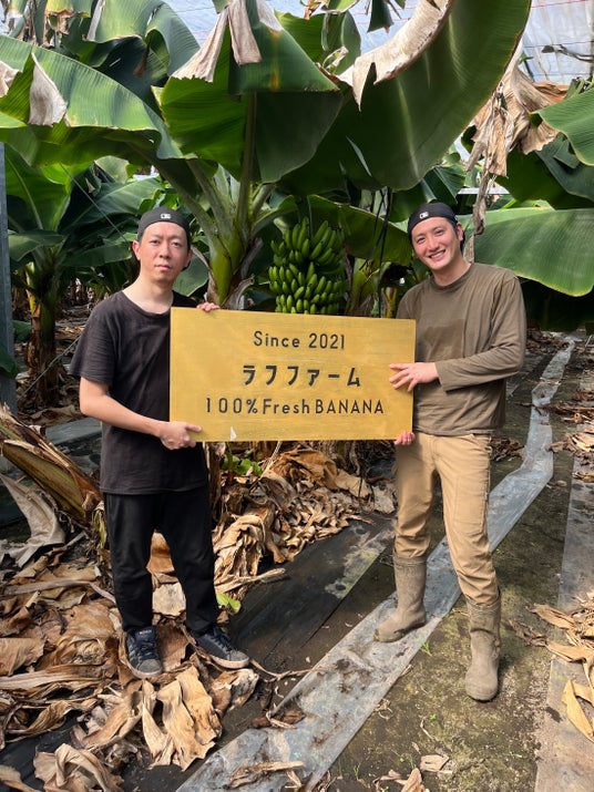 生産者は、合同会社Laughmens(所在地:栃木県真岡市、代表:豊田恵介)が運営する「国産バナナ農園ラフファーム」。地元に貢献できることをしたい、という思いをもった真岡市出身のメンバーを中心に、30代の同級生3人が施設園芸農業にて農薬不使用のバナナづくりを行っています。虫やカビなど、気を遣う面も多いバナナ栽培ですが、農薬には頼らず、丁寧に管理することで現在は1,000株ほどのバナナを育てています。しかし、丁寧に栽培している『とちおとこ』でも、規格外品となり市場に出せないものが一定数出てしまいます。「バターのいとこ」では、そういった理由で出荷できなかったバナナたちを積極的に使用し、生産者が安心して栽培を続けられる環境づくりを目指しています。