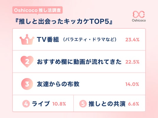 【Oshicoco推し活調査】4/4推し推しの日記念!『推しに出会ったキッカケTO5』を発表