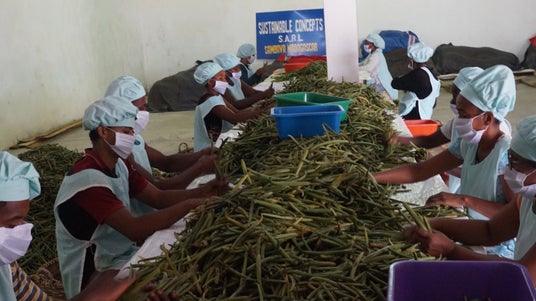 しかし、この低価格が続くと農家の収益が確保できず、バニラ栽培を続けることが難しくなります。実際に、バニラ農家の多くは十分な収入を得られず、フェアトレードの恩恵を受けられるのはごく一部(5%未満)の農家に限られています。現在の価格水準では、農家は利益を得るどころか、むしろ貧しくなってしまっています。農家が1シーズンに収穫できる生バニラは平均500~1000kgほどで、生バニラ5kgから黒バニラ1kgしか生産できません。つまり、最終的な黒バニラの収穫量は100~200kg程度になります。1シーズンに農家が収穫できるバニラのうち、最高品質のグレードAに分類されるのはわずか40~50%にすぎず、残りの短くなったり割れたりしたものは低品質とされ、安価で買い取られてしまうのが現状です。