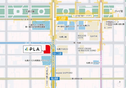 札幌大通地区のオフィス・商業複合ビル商業施設名称を「4PLA」、