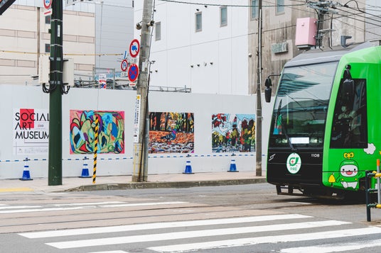 4PLAの新築工事中の仮囲いには、路面へのにぎわい創出の取組みとして、株式会社ヘラルボニーと共創し、主に知的障害のある北海道出身アーティスト5名の6作品を展示しました。当該作品を洗浄・パネル化し、開業後も引き続き館内に展示します。