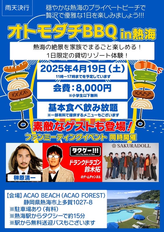 【in熱海】ドランクドラゴン鈴木拓・「令和の虎」榊󠄀原清一が登場。ファンと楽しむ「オトモダチBBQ」開催