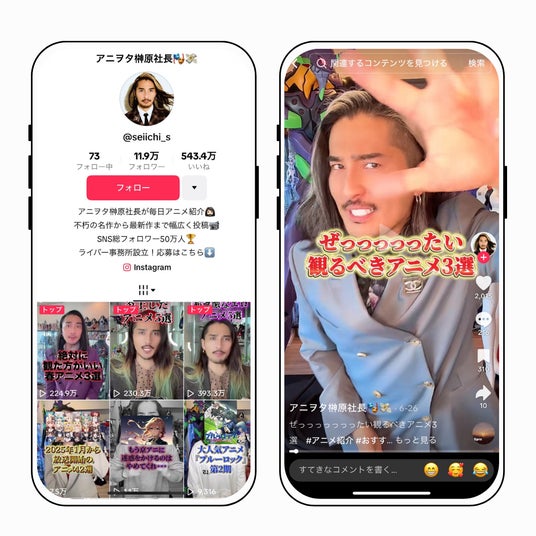 ●総フォロワー50万人以上を誇るアニヲタ社長として、アニメ情報をSNSで毎日配信し、100万再生以上のアニメ動画を次々と生み出す。