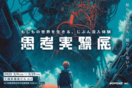 没入型体験エンターテイメントやイマーシブコンテンツを提供する株式会社NO MORE(本社:東京都渋谷区、CEO 佐田晋一郎)は、もしもの世界を生きる、じぶん没入体験『思考実験展』の開催と、先行体験可能な研究員になれるクラウドファンディングでの支援者募集開始を発表いたします。