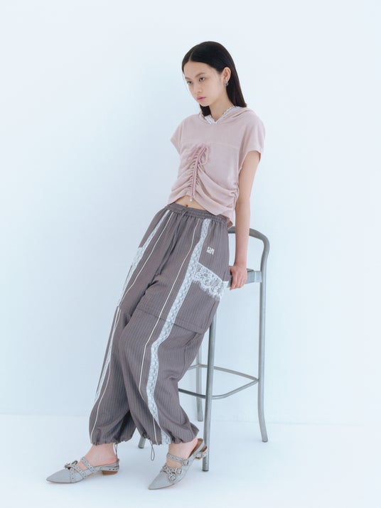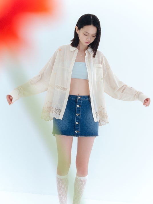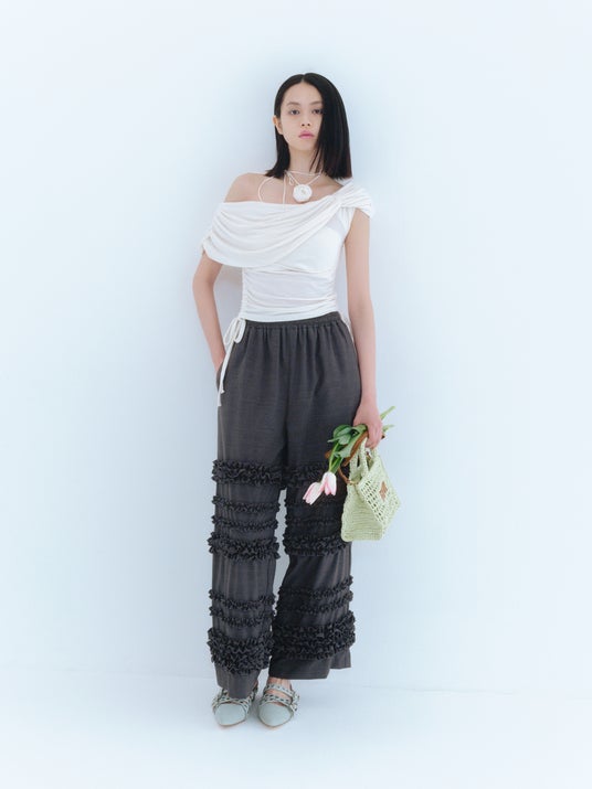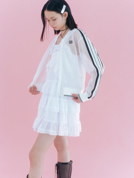 ボリューミーなコットンフリル、シアーで作るスポーティミックススタイル。