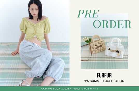 株式会社マッシュスタイルラボ(本社:東京都千代田区/代表取締役社長:近藤広幸)が展開するレディースブランド「FURFUR(ファーファー)」は2025年4月4日(金)12:00(正午)より、2025年夏コレクションをオフィシャルオンラインストア、ECデパートメントストア「USAGI ONLINE(ウサギオンライン)」にて公開、2025年4月10日(木)12:00(正午)より商品の先行予約の受付をスタートいたします。