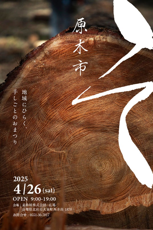 八ヶ岳南麓の木材を使った設計建築で日本の伝統技術を世界へ発信する工務店、素朴屋株式会社(山梨県北杜市/代表取締役:今井久志)は、今年も年に一度の素朴屋のおまつり「原木市(げんぼくいち)」を開催いたします。