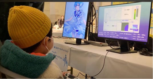 ヤマハが提供する歌声合成技術を活用。複数曲の中から自分の好きな楽曲を選び、音、声、音楽の要素をゲームコントローラーを使って編集可能な「Harmony Sensor(※)」を使った体験を提供。