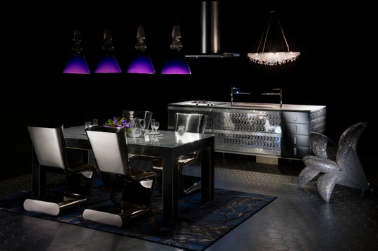 熟練のステンレス職人により形成されたフラットバーハンドルの全面に、約15,000個のクリスタルを施したキッチンです。ハンドルに手が触れるたびに、クリスタルが優美な光を放ちます。キッチンでの調理の瞬間を宝石のように輝かせ、日常に上質な輝きをもたらします。