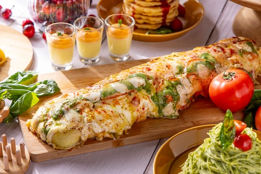 本フェアでは、新メニュー「ローリングピッツァ」が初登場。全長40cmのピザ生地に、3種類のソース(トマト、バジル、ミート)と数種類のチーズを巻き込み香ばしく焼き上げた独創的な一品です。生地、ソース、チーズの三位一体の美味しさをお楽しみください。
