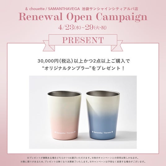 30,000円(税込)以上かつ2点以上ご購入で”オリジナルタンブラー“をプレゼント!