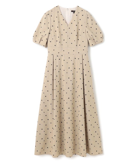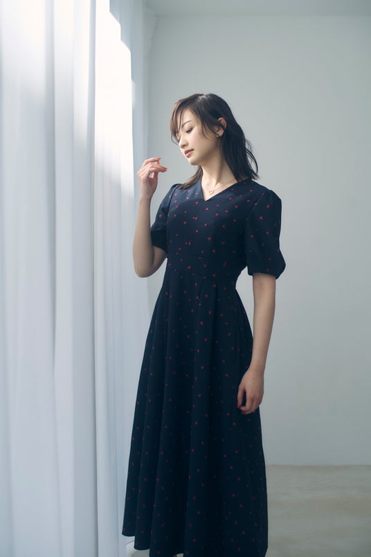 商品説明:小さなハートの刺繍が華やかな印象のワンピース。軽やかなサッカー素材は、ストレッチ性とイージーケアがデイリー使いにぴったり。長めのパフスリーブは、広がり過ぎず程よい甘さをプラスします。