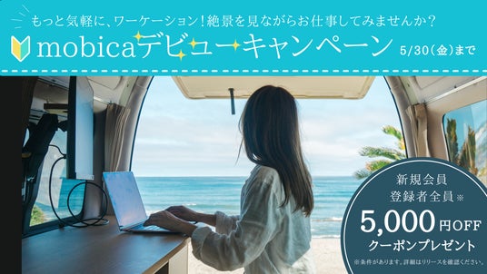 新規会員登録者全員に5,000円OFFクーポンプレゼント!mobicaを活用したワーケーションの世界観が分かるイメージビデオも公開。