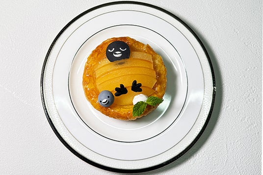 青森県産のりんごを使用し、ホテルオリジナルクレームディプロマットがアクセントになった本格的なアップルパイ。りんごの 布団でお休み中のSuicaのペンギンは思わずほっこりできる一品です。