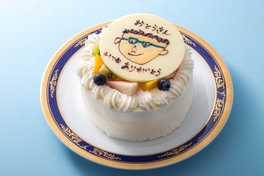 苺のショートケーキの上に、お子様が描いた似顔絵をパティシエが再現した直径9cmのチョコプレートを飾りつけます。