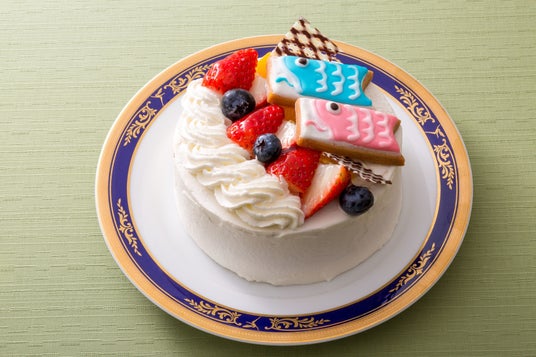 苺のショートケーキをベースに、季節のフルーツや鯉のぼりのアイシングクッキーを用意します。