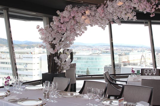 1階「オールデイダイニング カザ」および地下1階では、桜並木を歩く雰囲気を感じていただけるようフロアの両サイドを桜で彩りました。14階「フレンチダイニング トップ オブ キョウト」ではアーチ状に桜を飾り、桜を愛でながら360度広がる古都の街並みとともにフランス料理をご堪能いただけます。
