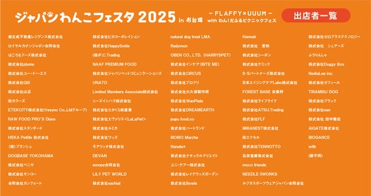 全国各地から厳選された多彩なペット関連ショップやサービスが集結いたします。ペットフード、ケア用品、おしゃれなアクセサリーや洋服など、愛犬と暮らす日常をより豊かにする商品やサービスを提供する出店者が勢揃いいたしました。詳細は【公式イベントInstagram】https://www.instagram.com/flaffy.fes/ にて順次ご案内していきます。