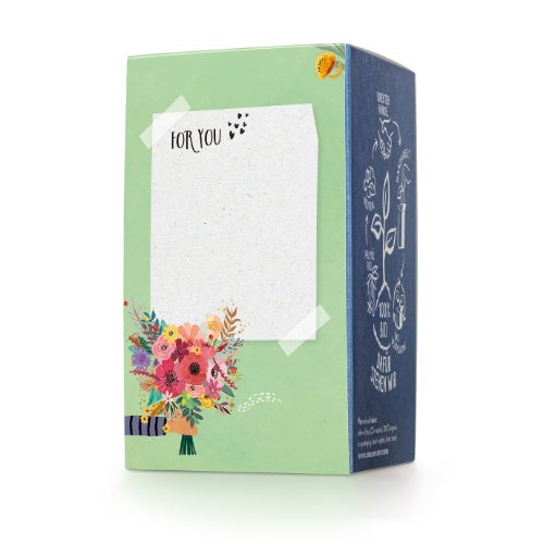 花束で彩られたスリーブの背面には、贈るお相手へのメッセージを書けるスペースもご用意しています。ギフトにぴったりな商品です。