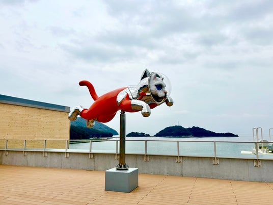 また、現代美術作家ヤノベケンジ氏の作品『SHIP’S CAT(Jumping)』が設置され、ジャンボフェリー「あおい」船上に設置される『SHIP’S CAT(Boarding)』とともに、瀬戸内国際芸術祭2025の展示作品として注目を集めます。