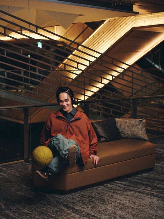 フリースタイルフットボーラー・Kazane Shimazakiが春の軽やかな新作ウェアを纏い、GINZA SIXを秘密の遊び場に。