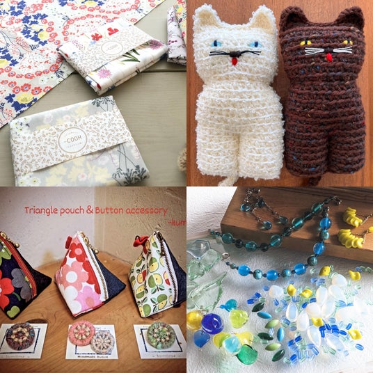 雨の日製作所 / Awabuku. / イトカト物々セイサク室 / itobanashi / うたうきせつ / ebiko / m's-select / 大宇陀ちくちく所 / -COOH / 木下あゆみ / kumiiro⁺ / クラフトAnsan / gloton / Qu'est-ce que c'est / sumicco / TARA / チャルカ / 手刺繍existence / nico. / 布そだてびと / BIKA soutache accessory / foo stitch / Fu-ra / Homespun Living / hopico / VOYAGE JEWELS&OBJECTS・PLENTY・彩花工房 / polkabambi / MURRAY / MANDRAKE / Medete-yayaco∞ya- / 紋白 / MONDO FIL / もんぺや / 山の果研究所 / Ludique / Y*RT2