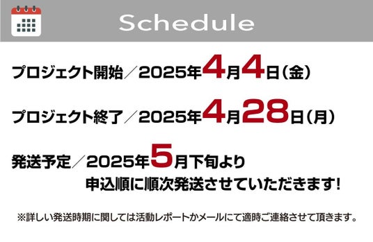 ※詳しい発送時期はに関しては活動レポートかメールにて適時ご連絡させて頂きます。