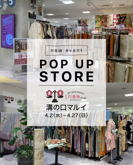 『日本のカルチャーを世界へ』というビジョンのもと、かんざしや箸、和傘等の和小物ブランドとサウナ・スパグッズ専門店を全国で複数展開する株式会社和心(東京都渋谷区、代表取締役社長:森 智宏、東証グロース:9271)は、4月2日(水)から4月27日(日)まで、マルイファミリー溝の口にて着物ブランド『1円着物wargo』のポップアップストアをオープンいたします。