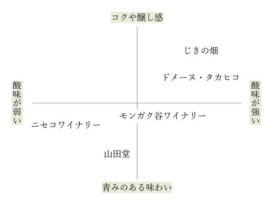 TASTE MAP(5つのワイナリーのテイストマップ)