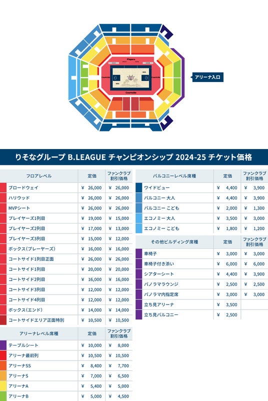 ・コートサイドボックス及びテーブルシートは2ゲームパッケージチケット対象外の席種です。