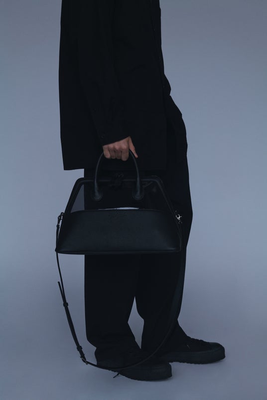 夏へ向けたPVCとレザーで構成されたバッグ。上質な抜け感が、日常のシルエットをユニークに描く。