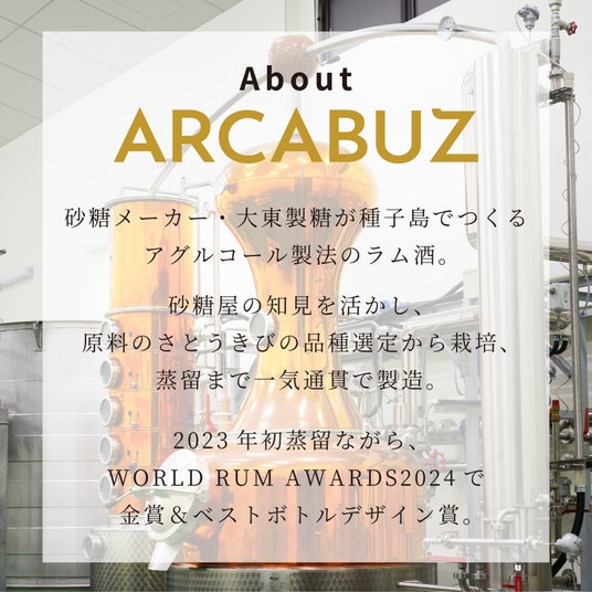 砂糖メーカーである大東製糖株式会社(千葉県千葉市美浜区 代表取締役:木村成克)が種子島の関連会社・大東製糖種子島株式会社で製造するラム酒・ARCABUZ(アーキバス)のテイスティング交流会を、2025年4月24日に東京都江東区で開催します。ARCABUZは世界的に権威のある「WORLD DRINKS AWARDS」の「WORLD RUM AWARDS 2024」カテゴリーにおいて、アグリコール製法のテイスト部門で日本初となる金賞、ボトルデザイン部門も日本初のベストボトルデザイン賞を受賞。砂糖メーカーがラム酒づくりを開始した背景などのブランドプレゼンテーションや、熟成中のゴールドラムの先行試飲、ARCABUZの個性を活かしたカクテルの提供などを行います。