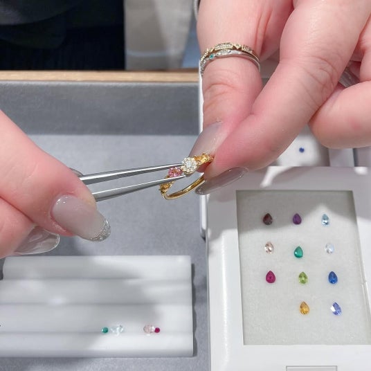 例えば「フルオーダーで、一からオリジナルのジュエリーを作りたい」― 宝石の色や形を一緒に選びながら、デザインのご提案を行います。経験豊富なメンバーが、お客様の希望やイメージを丁寧に形にするお手伝いをいたします。