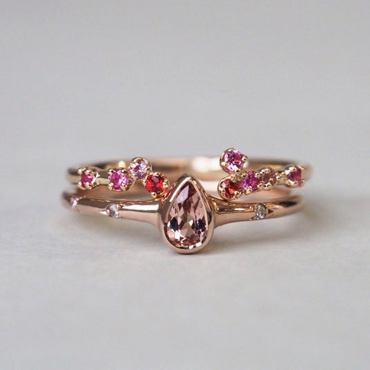 柔らかな陽ざしが降り注ぐ4月にふさわしい宝石、モルガナイト。桜色を思わせる優しいピンク、朝焼けを映すようなオレンジがかった色合い、そして涼やかさを感じさせる青みを含むピンクと、多彩な色彩を持つ宝石です。肌に乗せたときに引き立つ色合いは、ひとつひとつ異なる個性を映し出します。