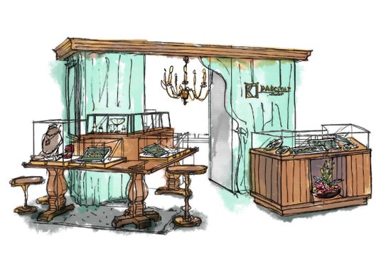 リニューアルのテーマは「舞台」。お客様を「観客」に見立て、パーセル ジュエリーが提供する演目(ジュエリー)を楽しんでいただきたいという想いをもとに、店舗を360度どの方向からも眺められるように設計いたしました。客席から舞台を眺めるような景色、舞台上から客席を眺めるような景色。ご覧になる角度や位置によって異なる情景を体感していただけます。