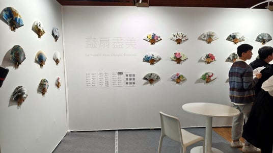 リヨンからの来場客:「日本工芸と中華伝統芸術の結合は非常に印象的です。アーティストたちは書道や水墨画などの技法を駆使し、日本の扇子に表現しています。これらの作品には、東洋の趣があるだけでなく斬新性も感じられます。アジアのアーティストたちは絵画の技術を魅せるだけでなく、書道の造詣も非常に深いため、文字が美しいです。」