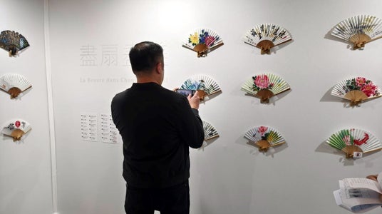 アジアのアーティストが京扇子に精巧な中華伝統芸術を表現。